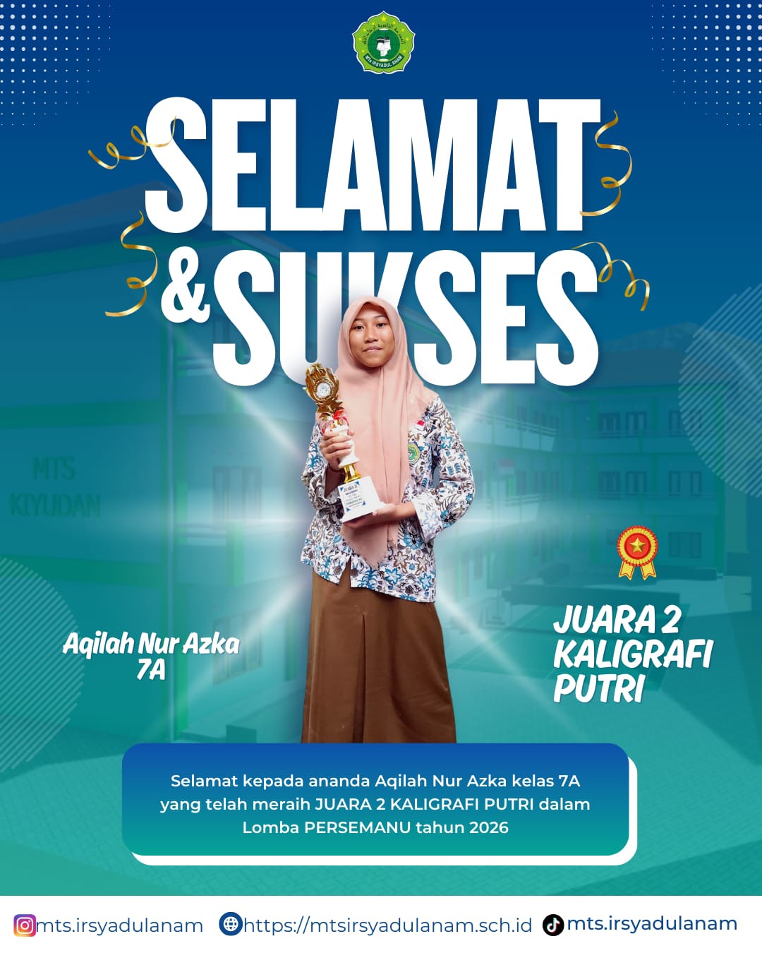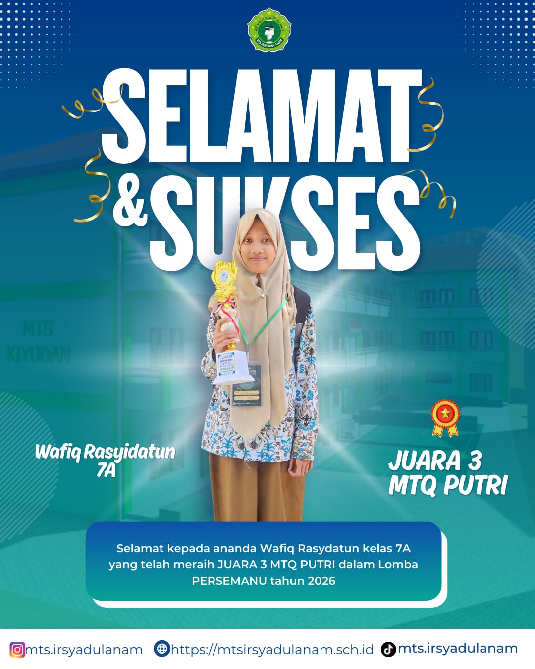 Kini, trofi-trofi tersebut berjajar rapi di lemari prestasi madrasah, menjadi saksi bisu bahwa di MTs Irsyadul Anam, menjadi juara adalah tentang menjadi pribadi yang lebih baik setiap harinya.