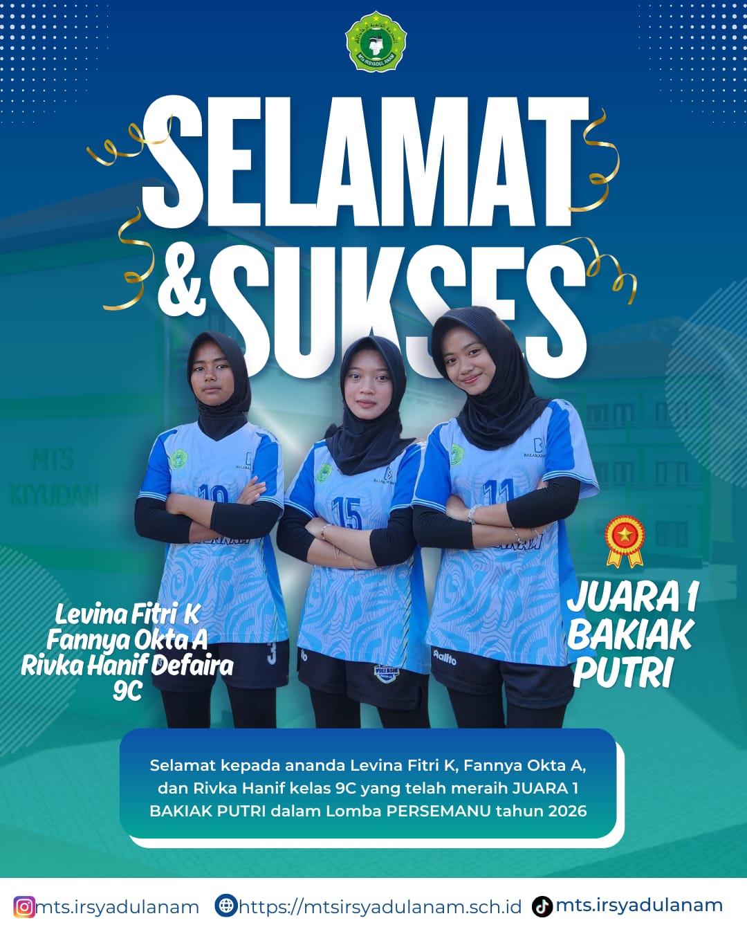 “Kami selalu menekankan kepada anak-anak bahwa juara itu bonus. Yang utama adalah bagaimana mereka menunjukkan akhlakul karimah, disiplin dalam berlatih, dan menjaga kekompakan tim,” ungkap Ibu Dwi Emy Sujarwi, S.Pd, koordinator kontingen MTs Irsyadul Anam.